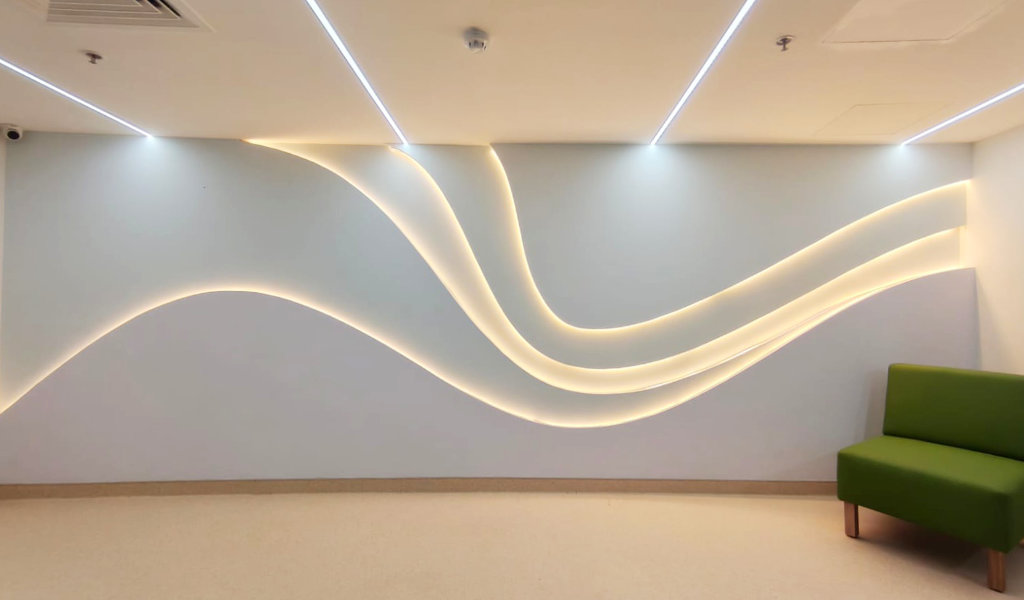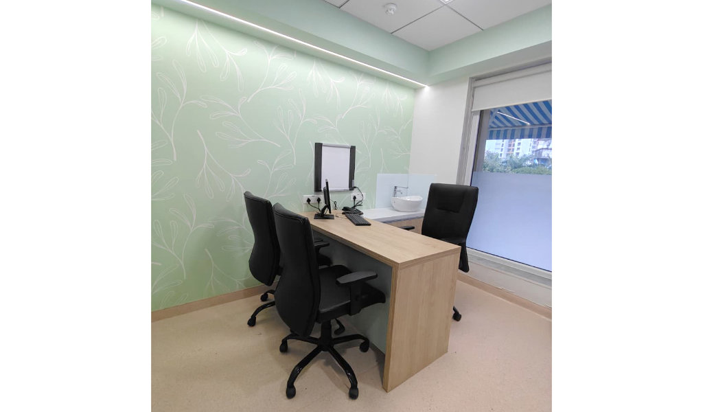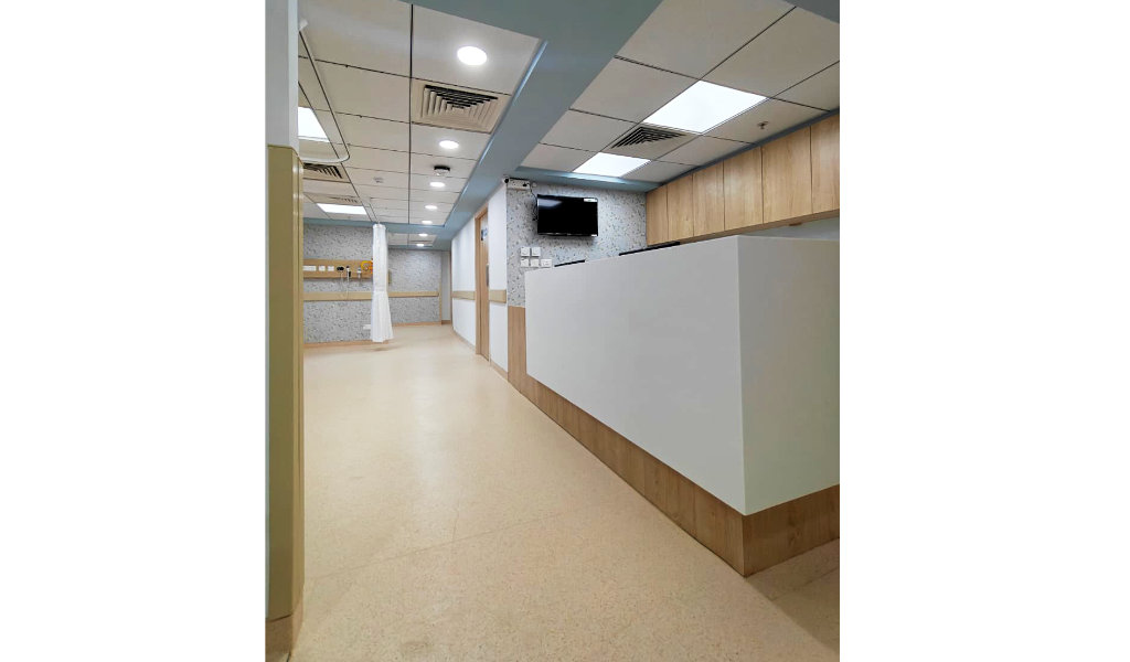 • Daycare rooms and inpatient wards were thoughtfully curated with ambient lighting and subtle wallpapers that highlight key design elements, ensuring a peaceful environment conducive to healing.