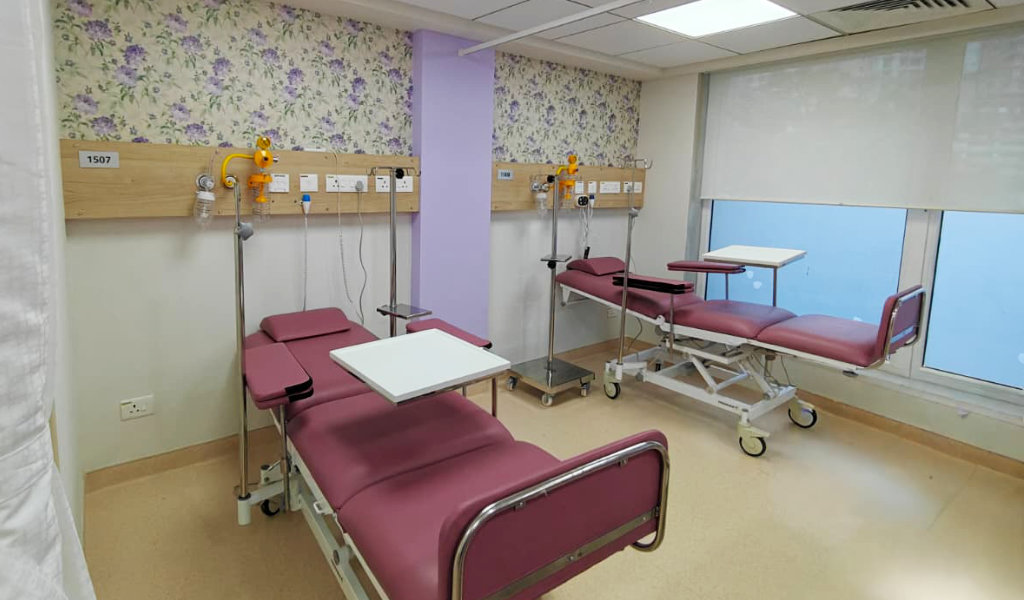 • The Oncology Department has been designed with a deep understanding of the unique emotional and physical needs of cancer patients. Every aspect – from the choice of colour themes to the layout of spaces – has been thoughtfully curated to create a soothing, therapeutic environment. The goal is to provide comfort, reduce anxiety, and promote healing through a setting that feels supportive, calm, and dignified.