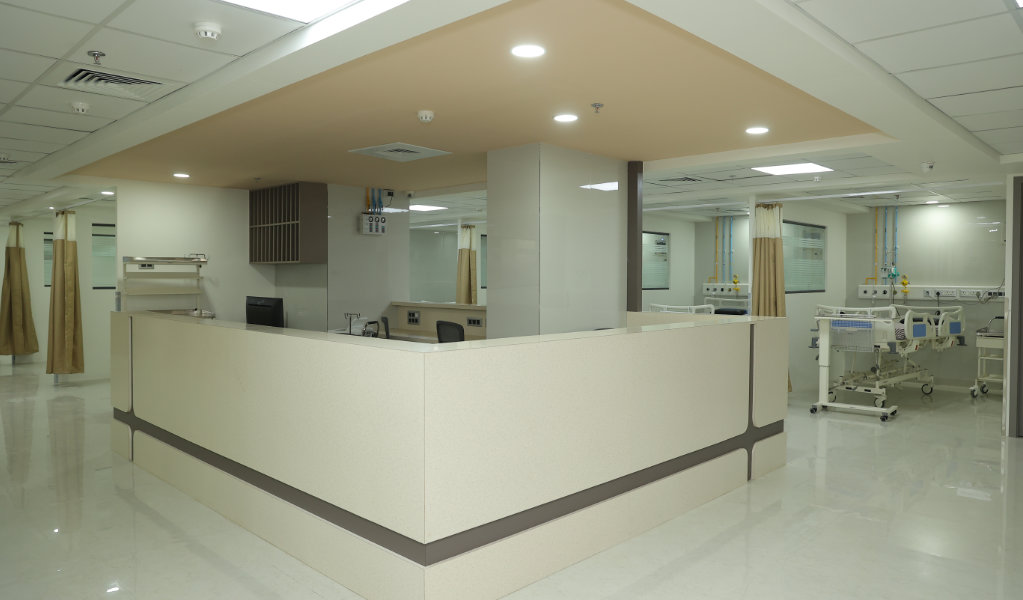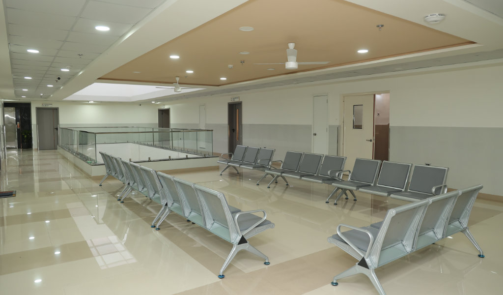 - OPD areas are designed using geometric forms expressed through partitions and ceiling treatments, providing a contemporary character while maintaining spatial clarity and functional efficiency.
