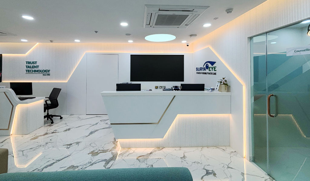 The goal was to create an elite, modern space that embodies the 3T’s of Surya Eye Institute – Trust, Talent, and Technology, ensuring an unparalleled experience for both patients and medical professionals.